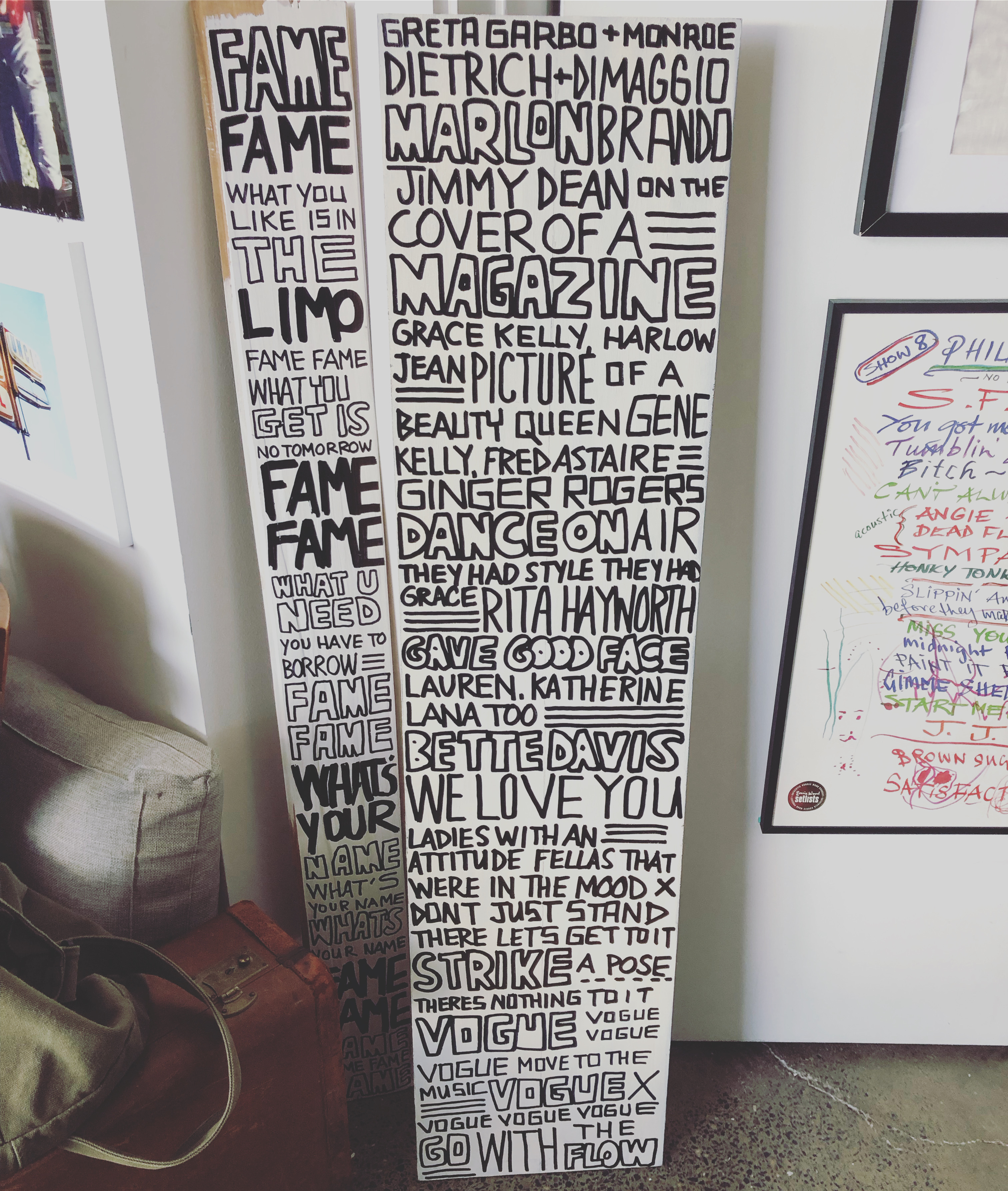 FAME + VOGUE FAME and VOGUE Acrylic and oil paint on reclaimed wood Sizes vary Share this: Click to share on X (Opens in new window) X Click to share on Facebook (Opens in new window) Facebook Like Loading... Related