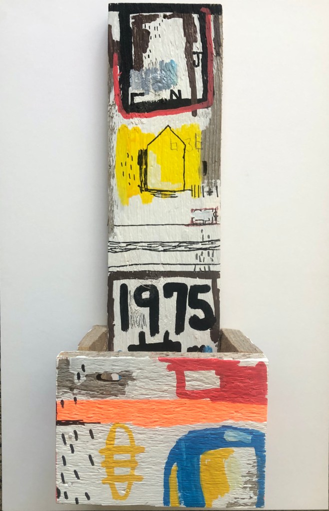 TOTEM 1975 TOTEM 1975 Oil, acrylic and pencil on reclaimed wood assemblage 14×5 inches Share this: Click to share on X (Opens in new window) X Click to share on Facebook (Opens in new window) Facebook Like Loading... Related