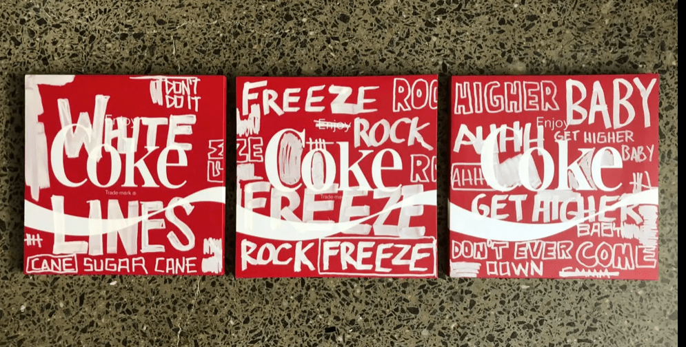WHITE LINES I created this triptych on printed COKE canvases as an ode to Melle Mel’s “White Lines.” Share this: Click to share on X (Opens in new window) X Click to share on Facebook (Opens in new window) Facebook Like Loading... Related